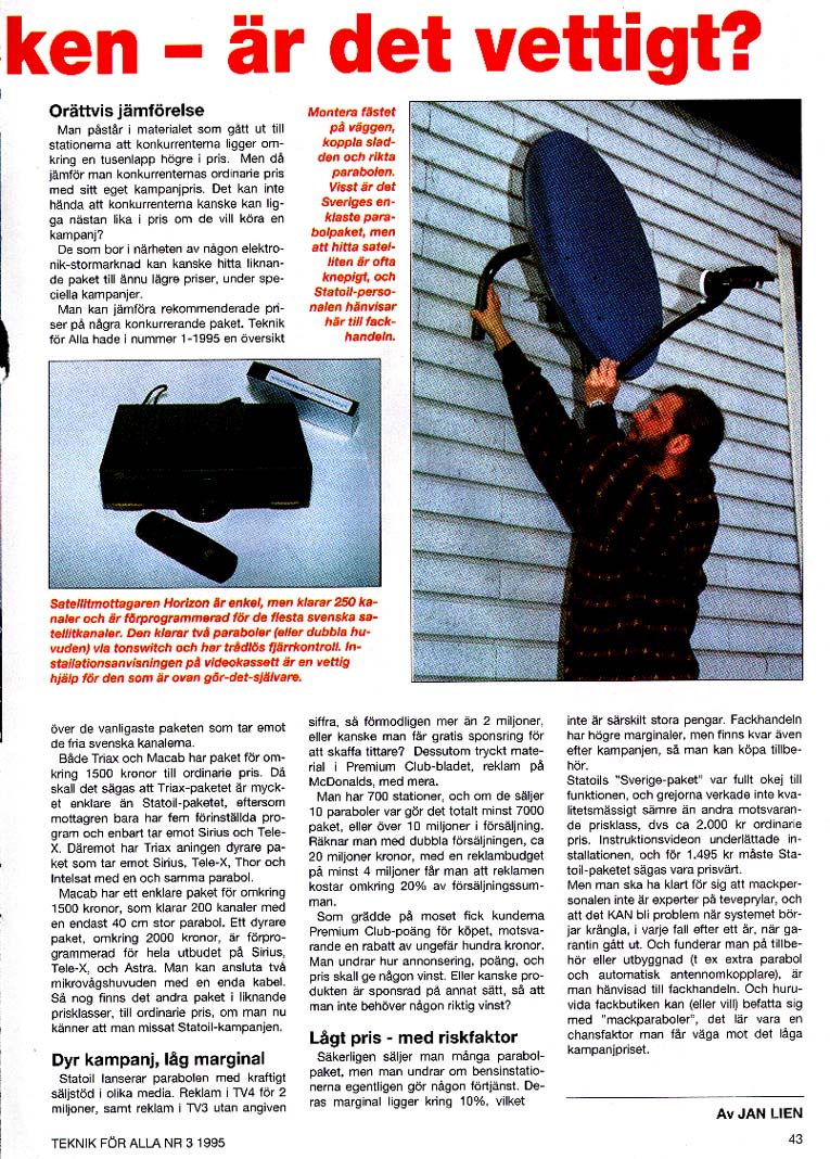 These are stories about technology in general. I have written much about mobile phones, computers, but also about TV antennas, motorcycles, and much more. This magazine was one of the first dedicated to technology in Sweden, and started in the 1940's. Now it has folded.